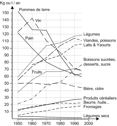 et de légumes secs (de 155,8 à 65,7 Kg/an). Ces aliments